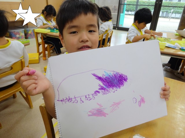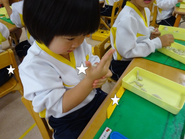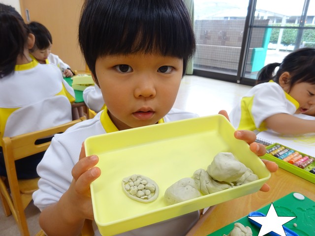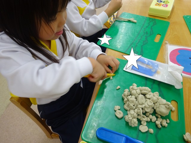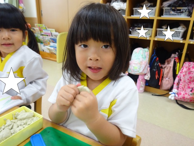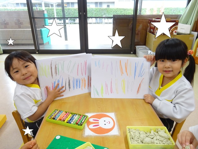 りんご組さんの粘土遊び・自由画の様子です![]()