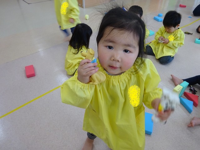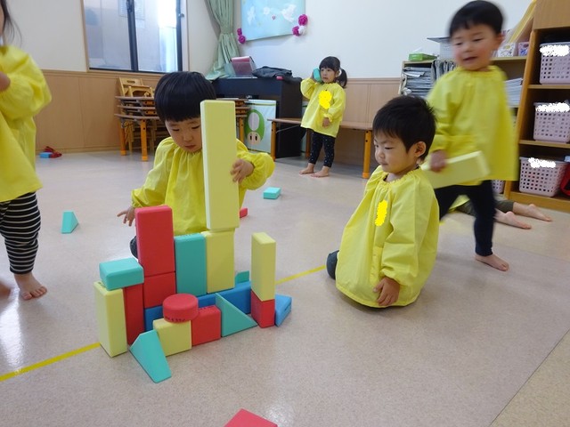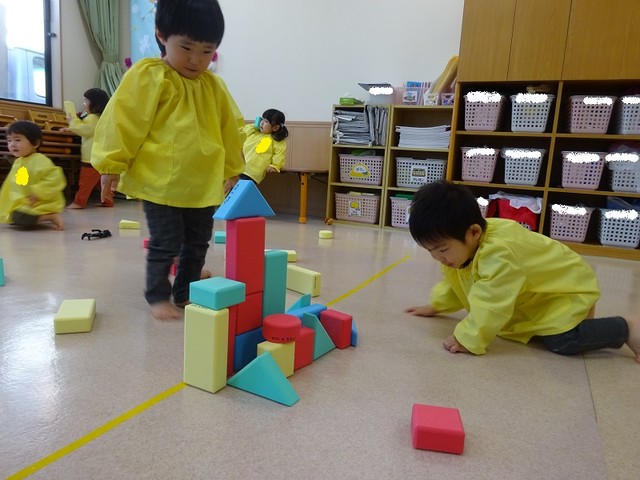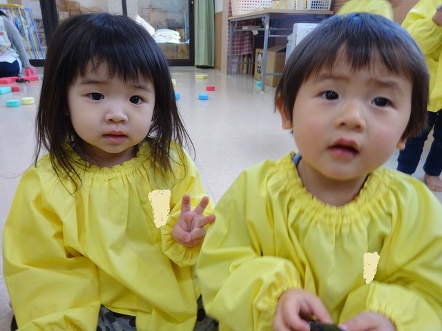 新★ぶどう組さん 2019年04月08日 ご進級おめでとうございます 進級して一週間程経ちました一つお兄さん、お姉さんになった子ども達のお部屋の様子をお伝えします 黄色のスモック とっても似合っていますね ワンちゃんだいすきみんなでハイポーズ もうすぐ3歳 真剣に・・・戦っています 真剣に・・・観察中 真剣に・・・ソフト積み木 完成新生活を楽しく過ごしている子ども達です 子ども達にとって楽しい一年間となりますように 一年間よろしくお願い致します
