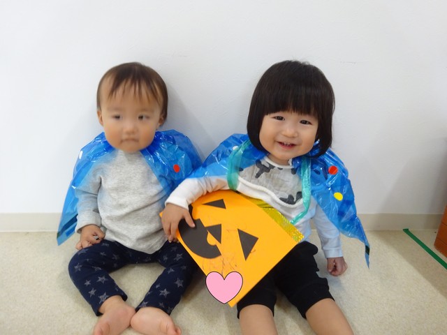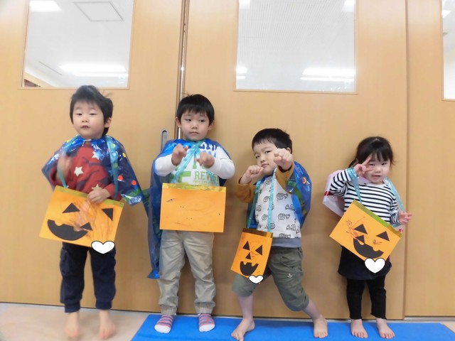 明日は…♡♥♡ 2019年10月30日 10月31日は、ハロウィン という事で、手作りのマントとお菓子バックをつけて、写真撮影をしました みんなとても似合っていて、かわいいですね明日のハロウィン集会が待ち遠しいね