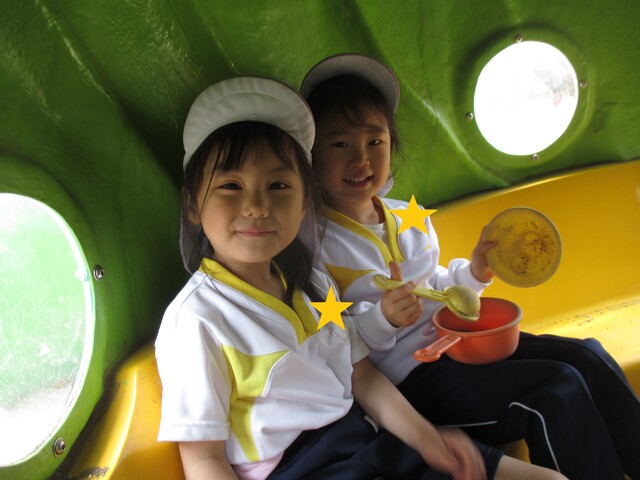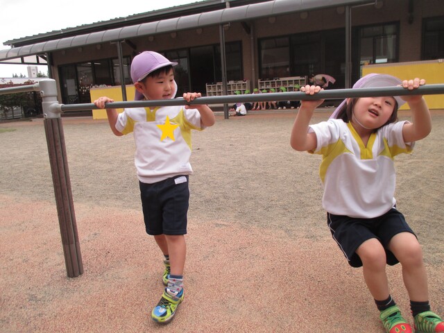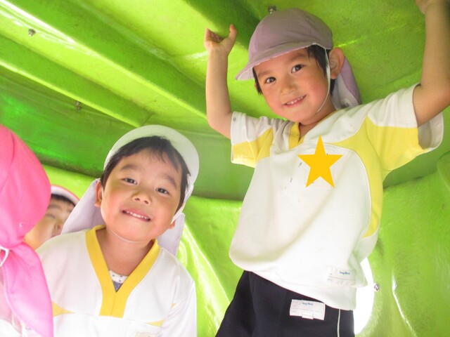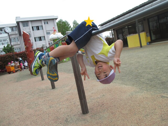 🍌外遊び🍌 2020年05月22日 こんにちはここのところ❝寒い❞くらいですね…外で遊びたくて、窓の外をいつも気にしています。ばなな組のみんなは、元気いっぱい 園庭で遊んでいる様子をお伝えします。 三輪車で軽快にサイクリングおーーーーーっ 鉄棒にも挑戦 虫取り名人がいっぱいです 木登りも大好き お気に入りの場所で、お茶会 また、みんなで外で遊ぼうね