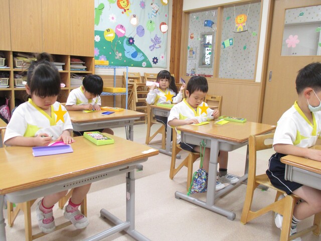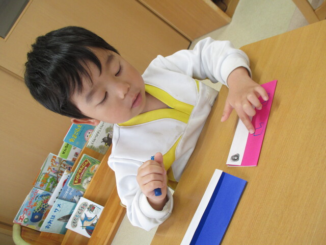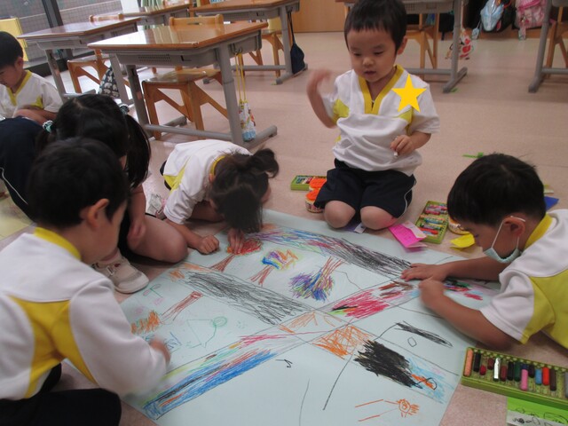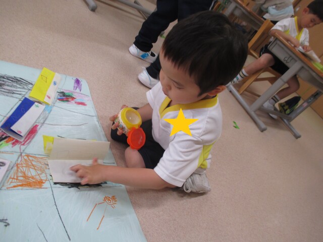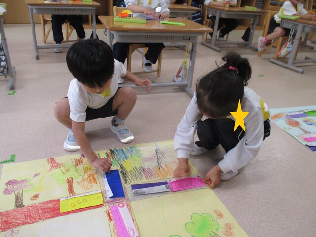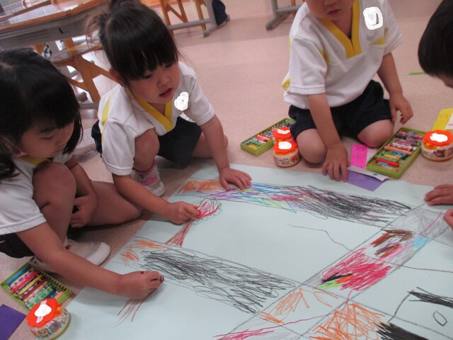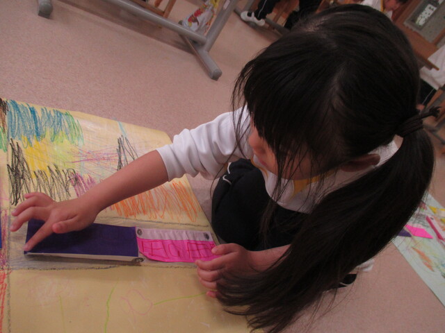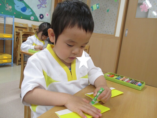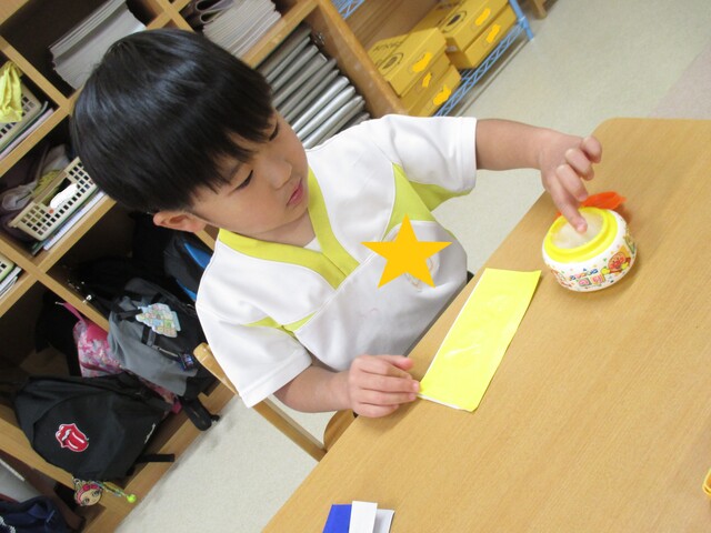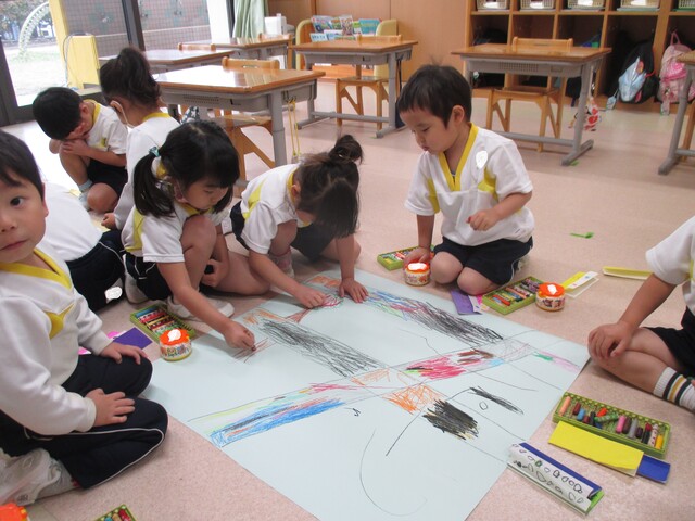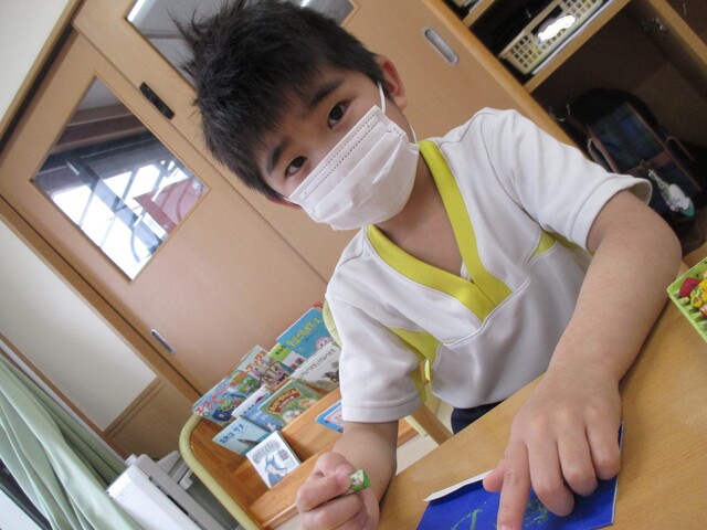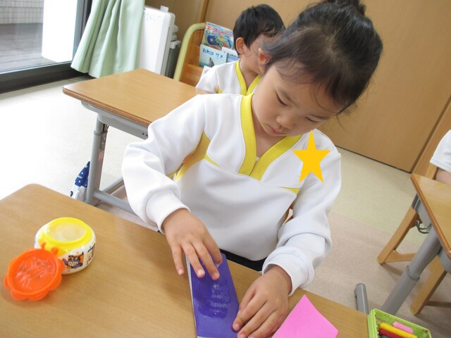 🍌みんなで作りました🍌 2020年05月22日 今回は、製作の様子をお伝えします 折り紙で「バス」を作りました。「どうしようかな~?」 できたよ~ できた【バス】で楽しんでいます そして、のり付け 大きな紙にみんなで貼りました でき上がり 窓に飾ってます