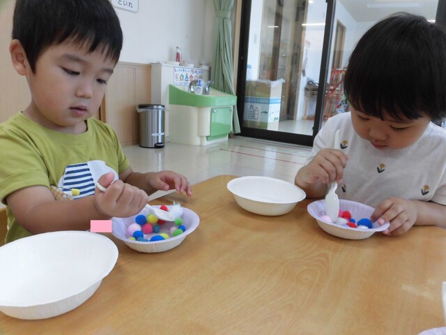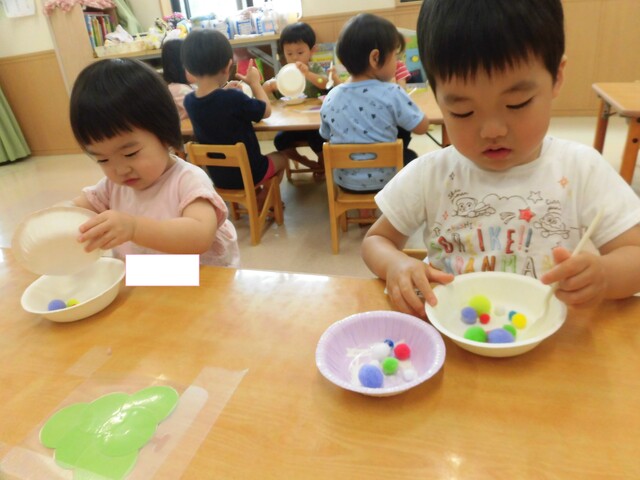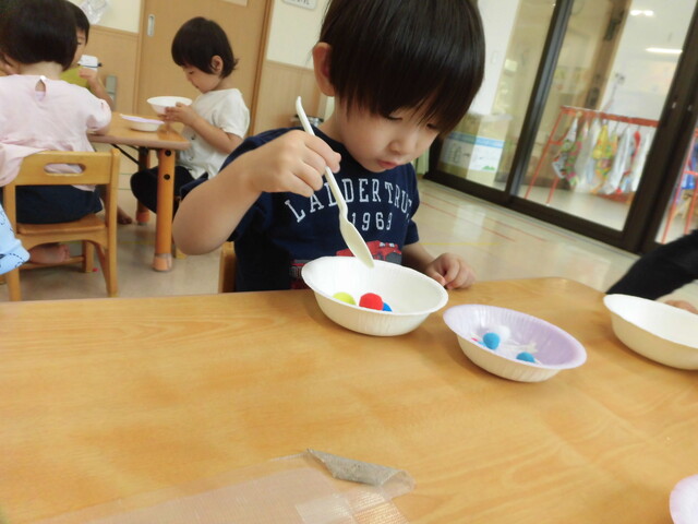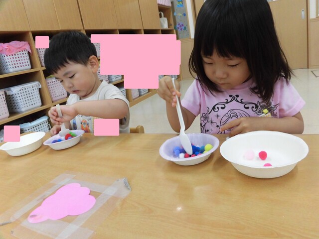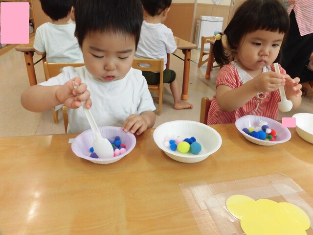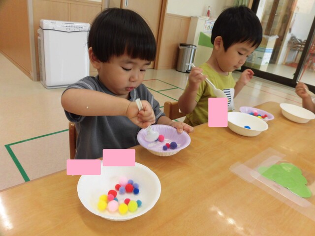 🍇スプーン遊び🍇 2020年06月24日 5月からお箸以降へ向けて始まったスプーン遊びまだまだ、難しいようですが、集中して頑張っています 少しずつ上手に持ててきていますね給食の時間も頑張っていますので、ぜひご自宅でも挑戦してみて下さい