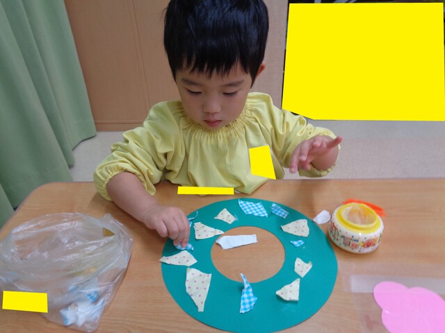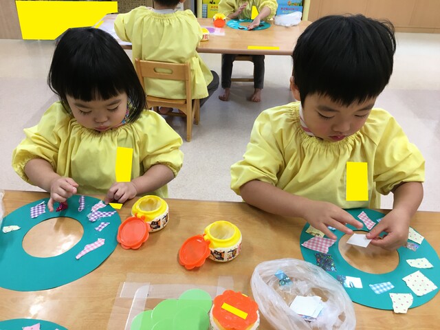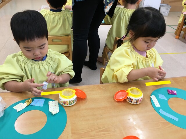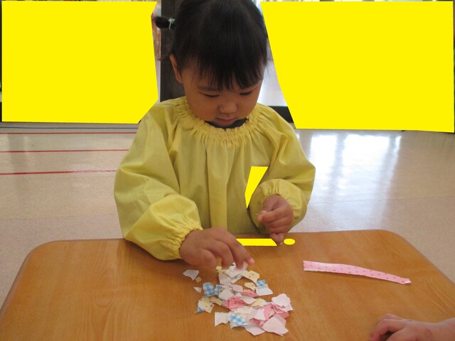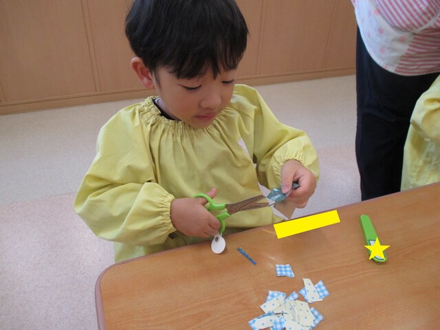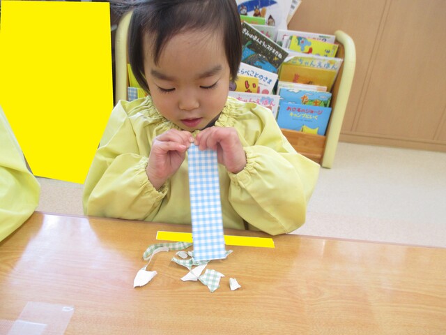 保育者に手伝ってもらったり、自分で切ったりしながら行いました![]()