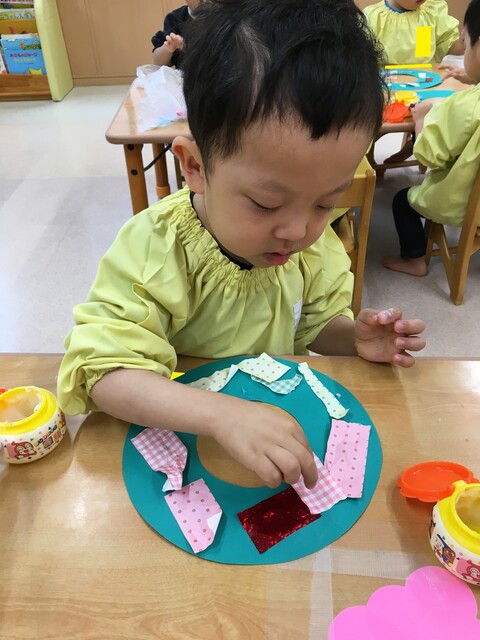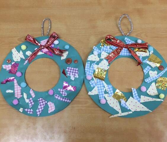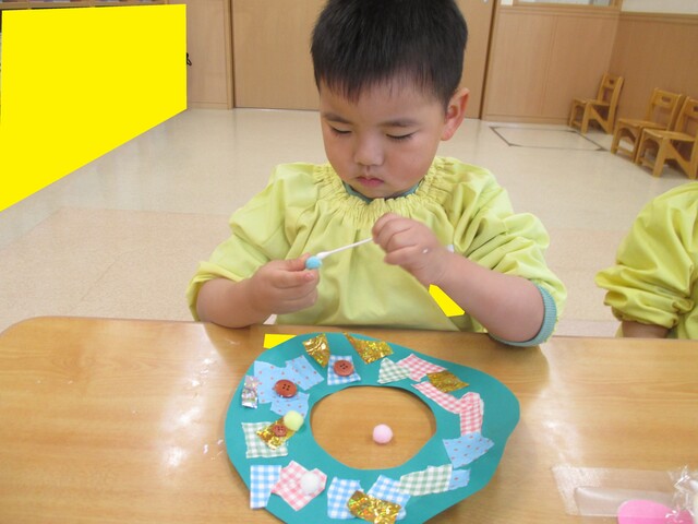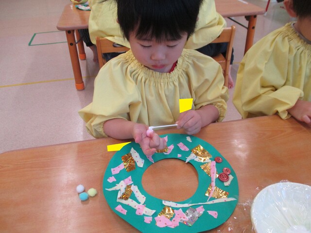 クリスマスに向けて、ぶどう組さんはリースのオーナメントを製作しました![]()