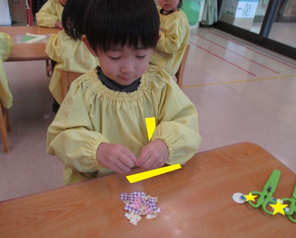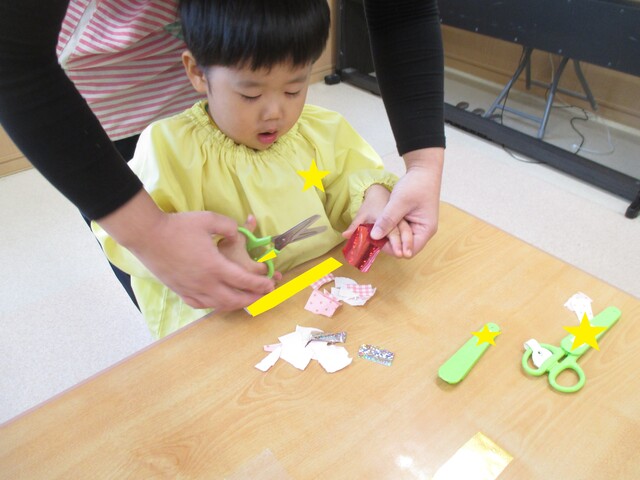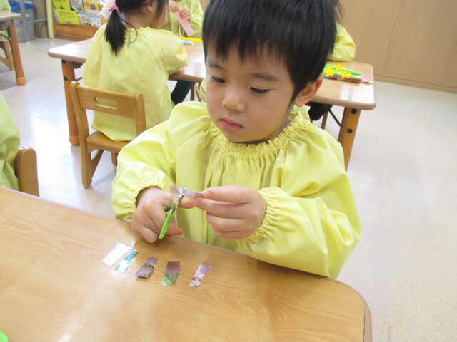 のホログラム入りの折り紙はハサミを使って切りました![]()