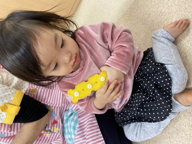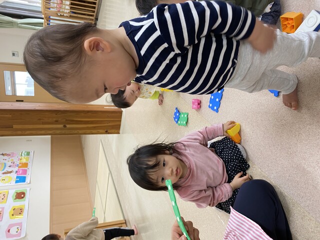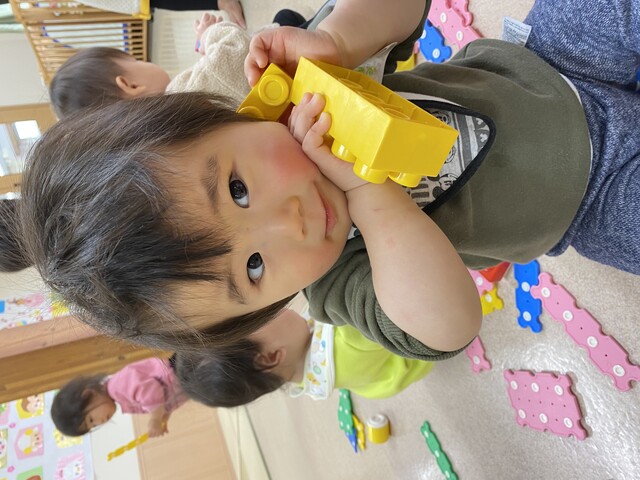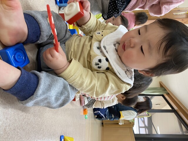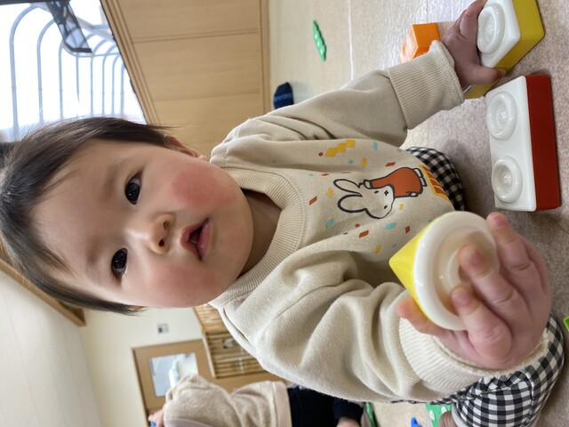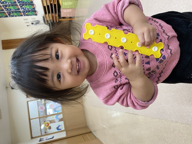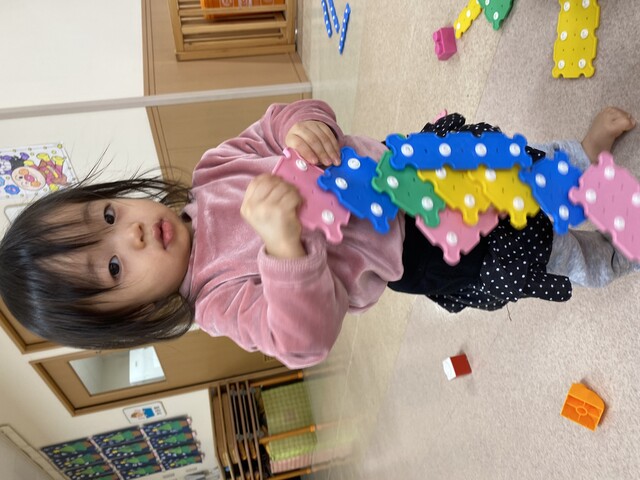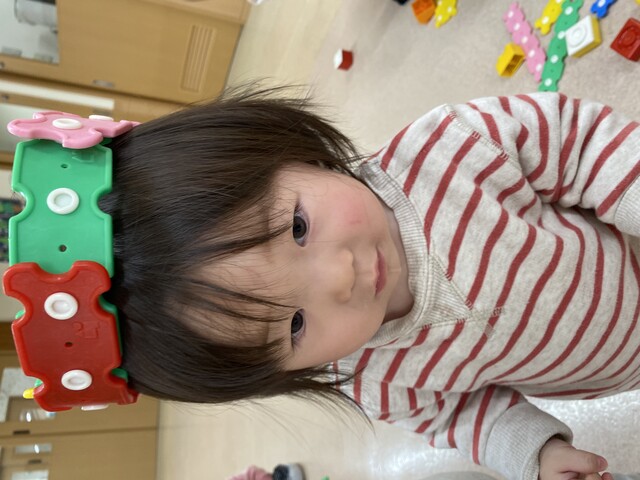 🍒室内遊び➀🍒 2021年02月10日 みんな大好きな室内遊びの中で、『ガラガラブロックと フックブロック遊び』 の様子をお見せします 真剣に何かを作っています ベルトや冠が出来たね にっこり嬉しそう 次は、室内遊び②です!!!