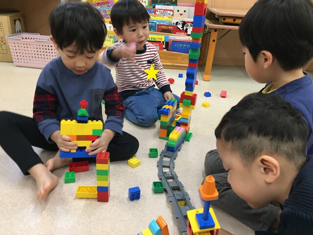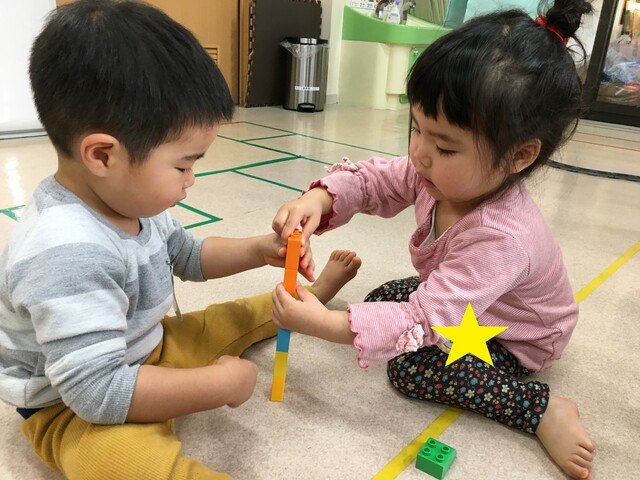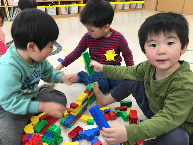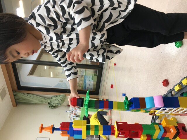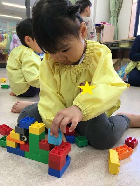 好きな物をじっくり積んだり、お友達と一緒に作ったりしながら遊んでいます![]()