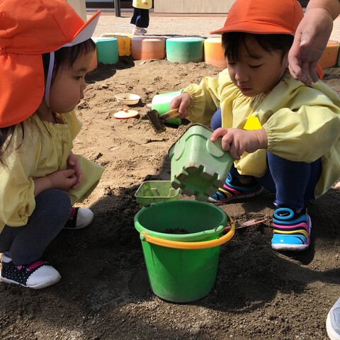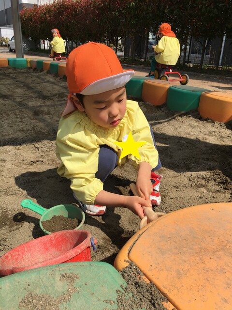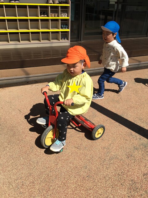 すべり台やかけっこ、砂場遊び、三輪車と、好きな遊びをじっくり楽しんでいます![]()