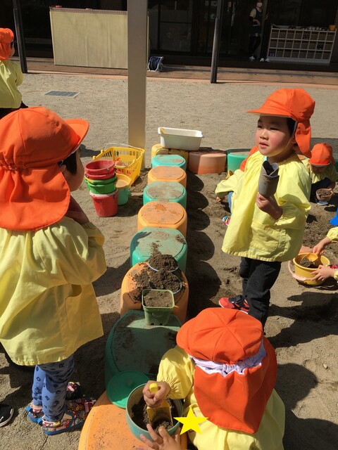 4月当初、新しいお部屋でスモックの着方を教わったり身支度を保育者から聞いて進める子ども達の姿が懐かしく思い出します![]()