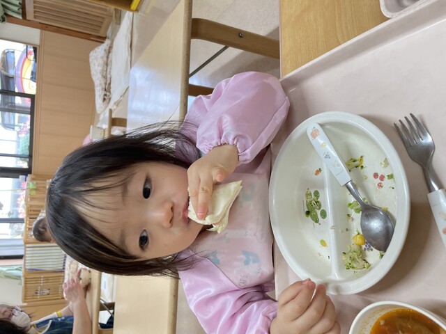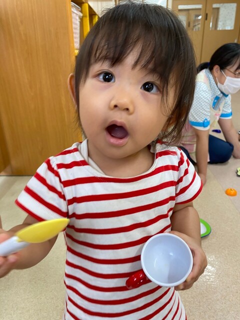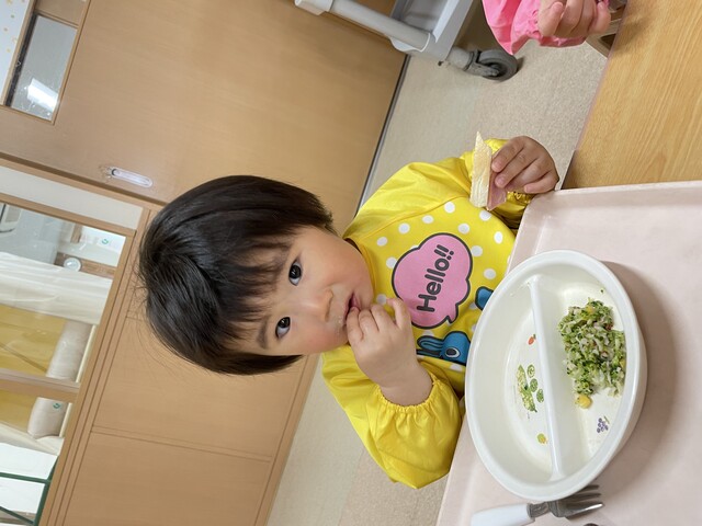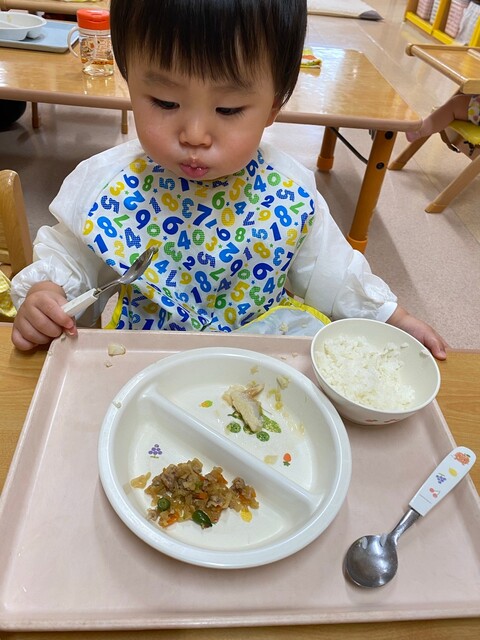 スプーンを使って自分で口に運び、完食出来るようになりました![]()