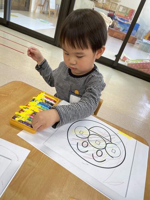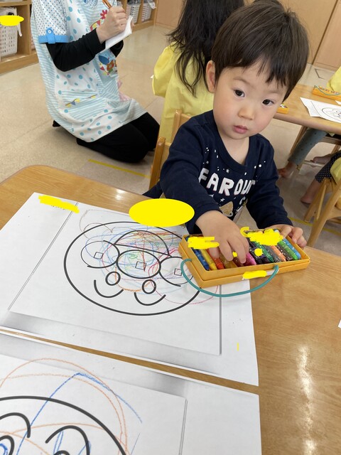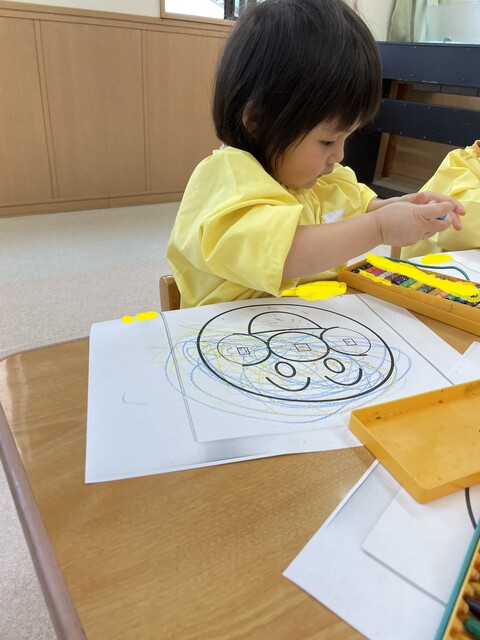 🍇塗り絵・戸外遊び🍇 2021年05月13日 アンパンマンの塗り絵に挑戦しました 馴染みのあるキャラクターだったので、みんな真剣に塗っていましたスモックもとても似合っていますね 戸外遊びも大好きです遊具を使うときは、しっかりと順番を守ることが出来ます みんなで、いろいろな事を経験して楽しい思い出をいっぱい作っていこうね