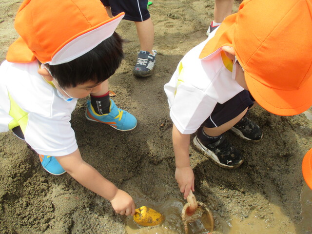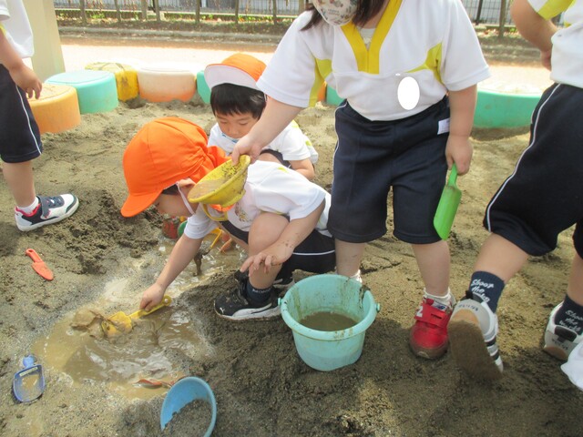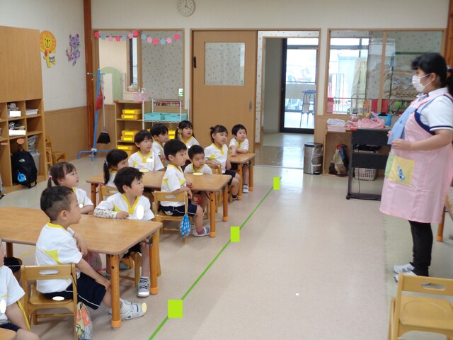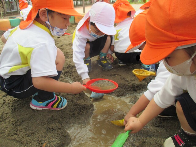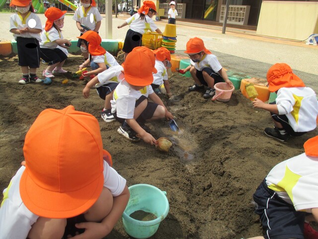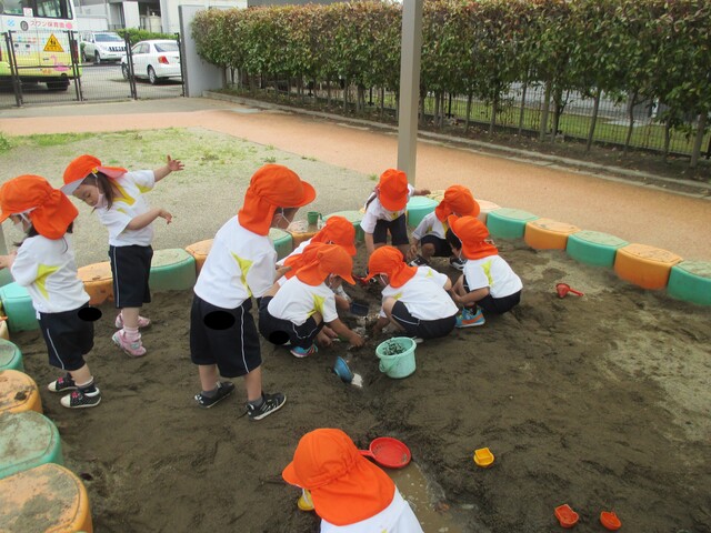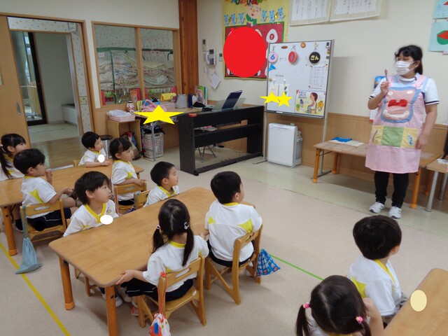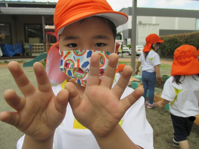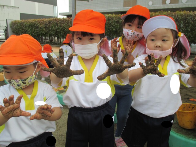 🍎保健シアター&泥んこ遊び🍎 2021年06月23日 今回は、「歯みがきについて」看護課の先生からお話を聞いている様子をお届けします「虫歯予防デー」もあり、歯の磨き方を学びました。とっても真剣にお話を聞いていますお話をしている人の「目」をみて、「耳」で聞いています聞くことが上手になりました。給食を食べた後は、しっかり歯みがきをしています次は、泥んこ遊びをした時の様子です。「今日は、泥んこ遊びをします!」と言った瞬間「やったー!」と大喜び笑顔いっぱい、夢中で泥の感触を楽しみました 「見てみて、お手ても泥んこ」と見せてくれましたお料理を作ってる模様です。何が出来るのでしょう次回もお楽しみに