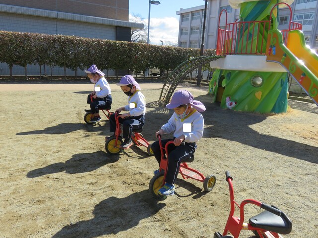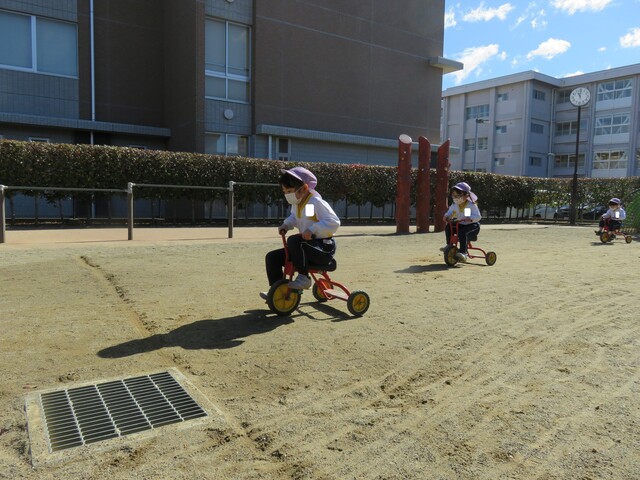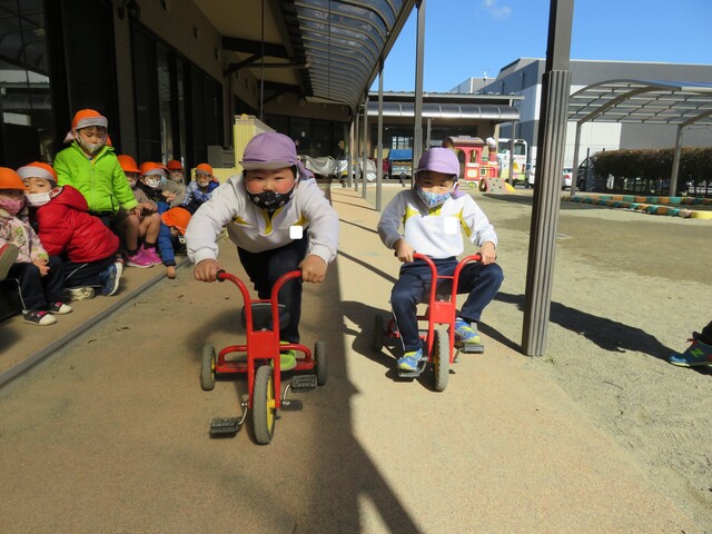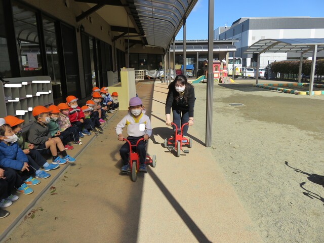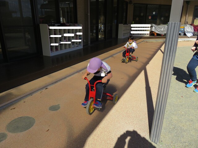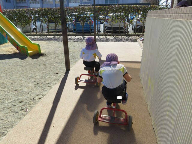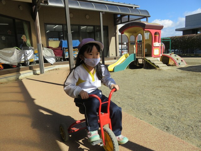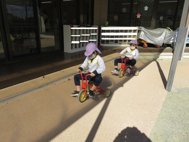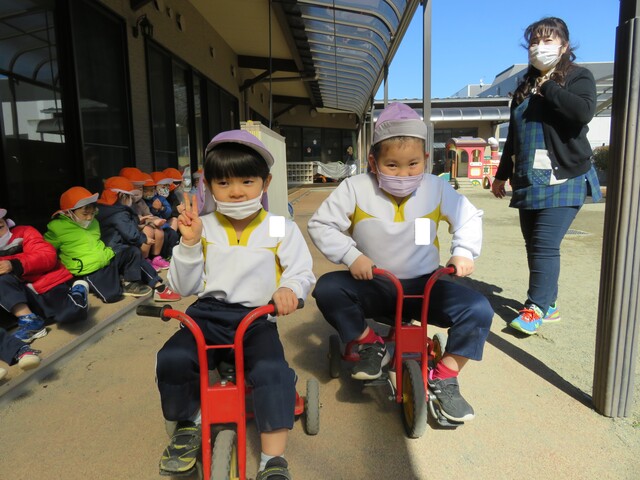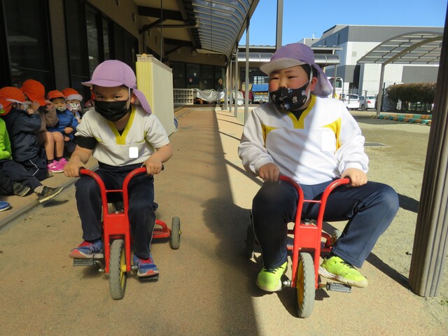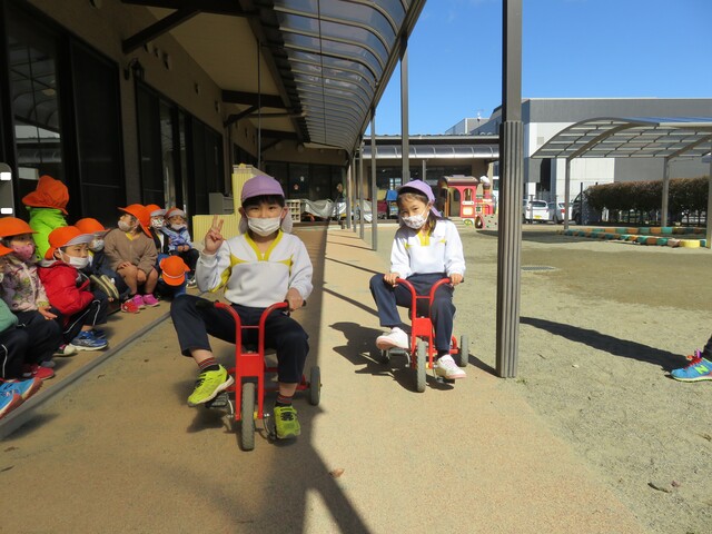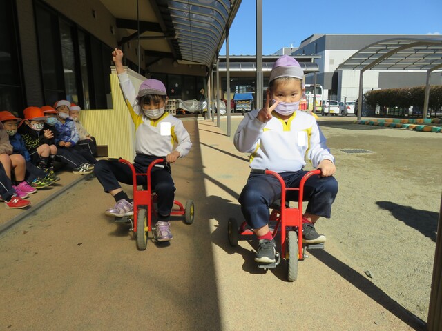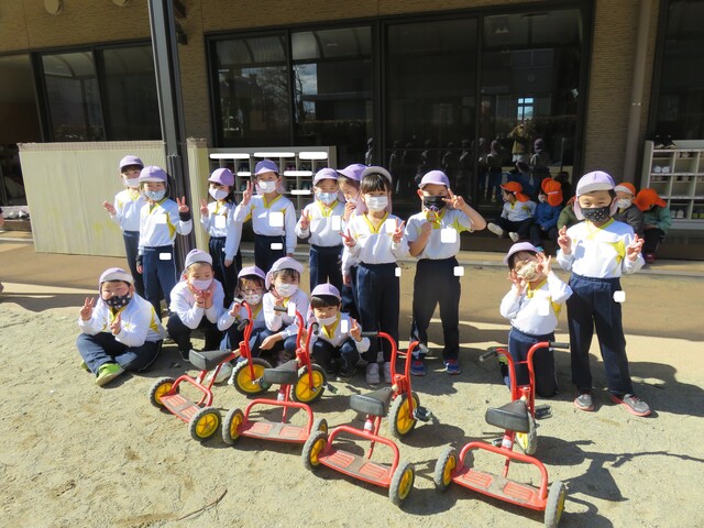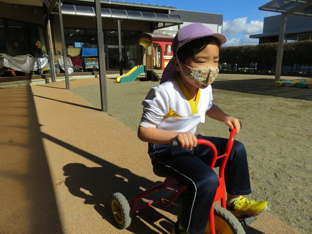 この日の為に、大きくなった身体でどうやったら三輪車が