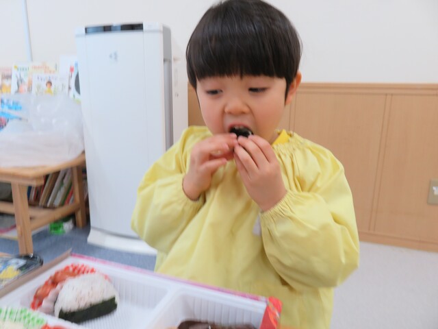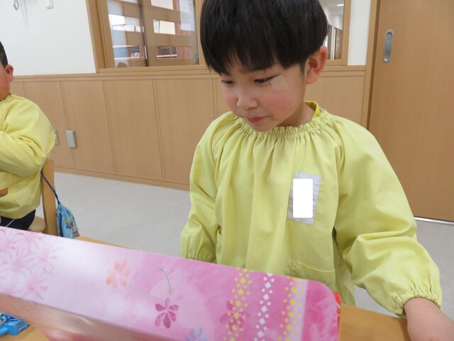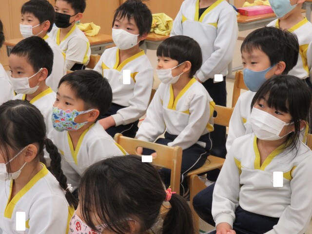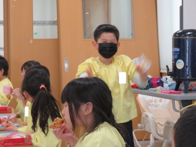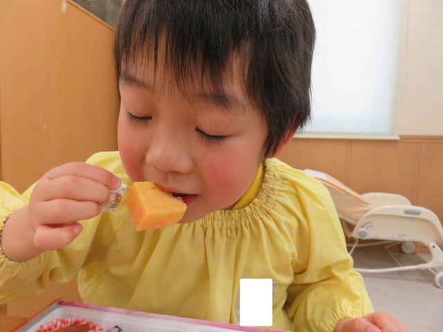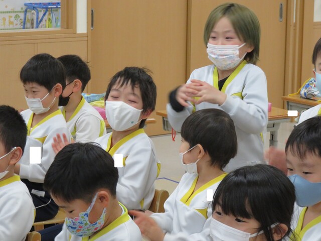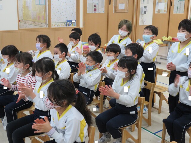 🍋お楽しみ会🍋 2022年02月24日 今日は、サプライズでのお楽しみ会がありました何が始まるのか知らされないまま、多目的ホールに集合したれもんさん18人テーブルの上には秘密の箱 まずは、マジックショーどんなマジックかなあ…興味津々です 次々に繰り広げられる不思議な出来事にれもんさん達はビックリΣ(・ω・ノ)ノ! そして、秘密の箱の中身は…スペシャルお弁当でした美味しい顔、楽しい顔😊「せんせーい、おいしいよー!」「たのしいーーい!」「きょうはさいこうだよ」等々、聞いている方も嬉しくなる言葉が沢山飛び出しました 楽しい一日になりました