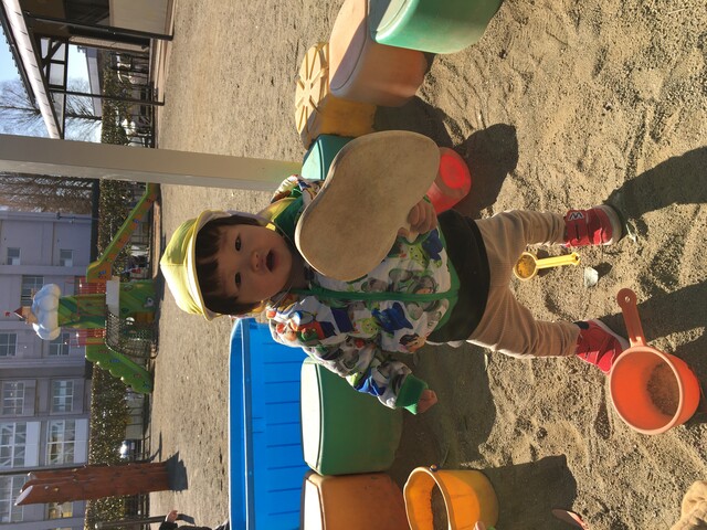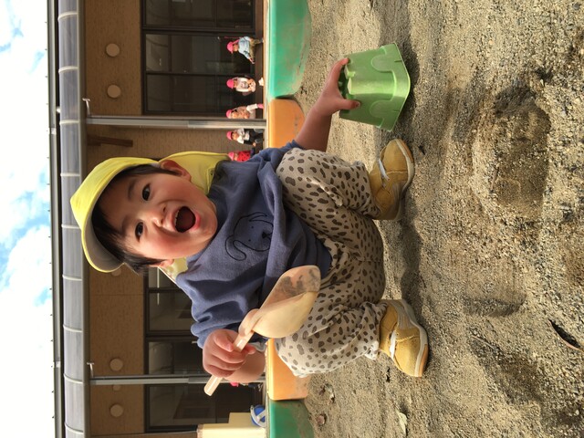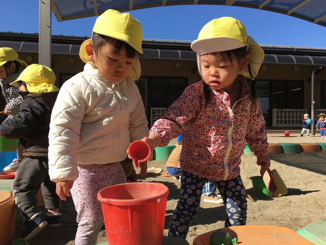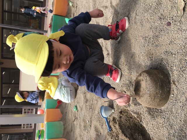 砂場遊び、お友達と一緒にお料理をしています![]()