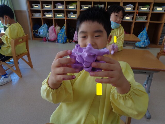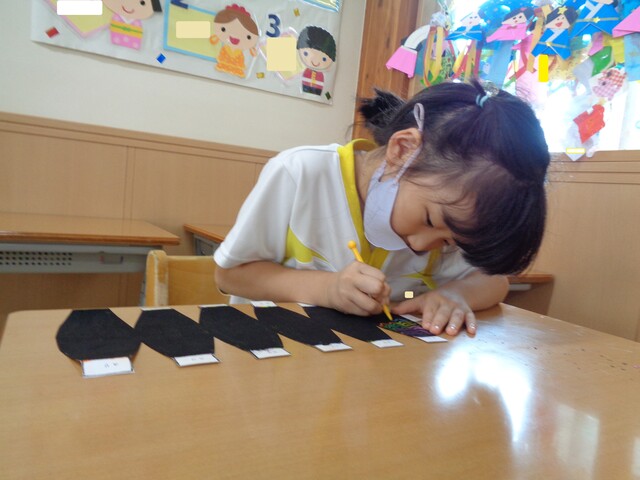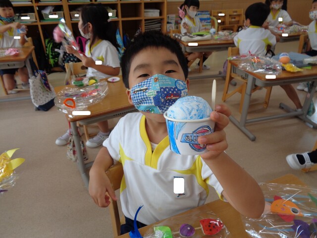 🍋夏祭り製作🍋 2022年08月20日 夏祭りに向けて製作をしました『ちょうちん』 真剣に描いてま~す綺麗な模様が出来たよ 素敵な『ちょうちん』が完成しました次は・・・お店屋さんの品物『アイスクリーム』 綺麗に塗れていますね アイスは・・・紙粘土に絵の具を混ぜて 美味しそうに出来上がりました『夏祭り』第二弾もお楽しみに