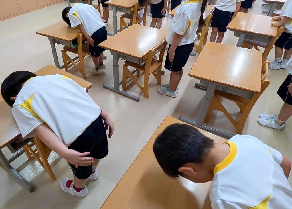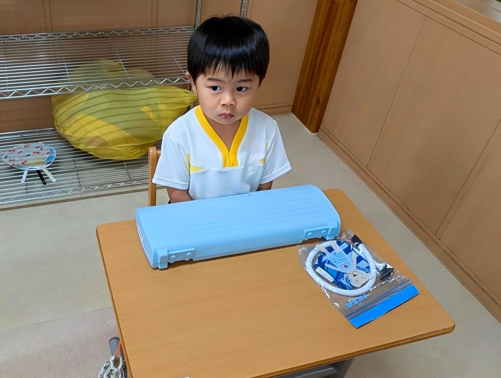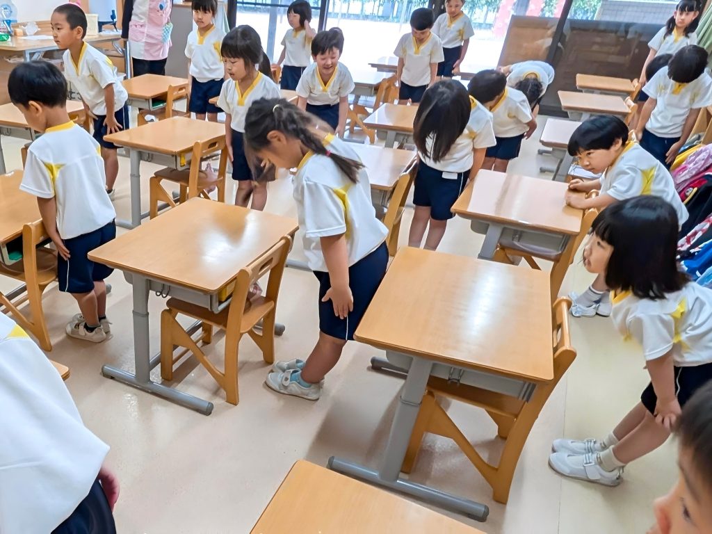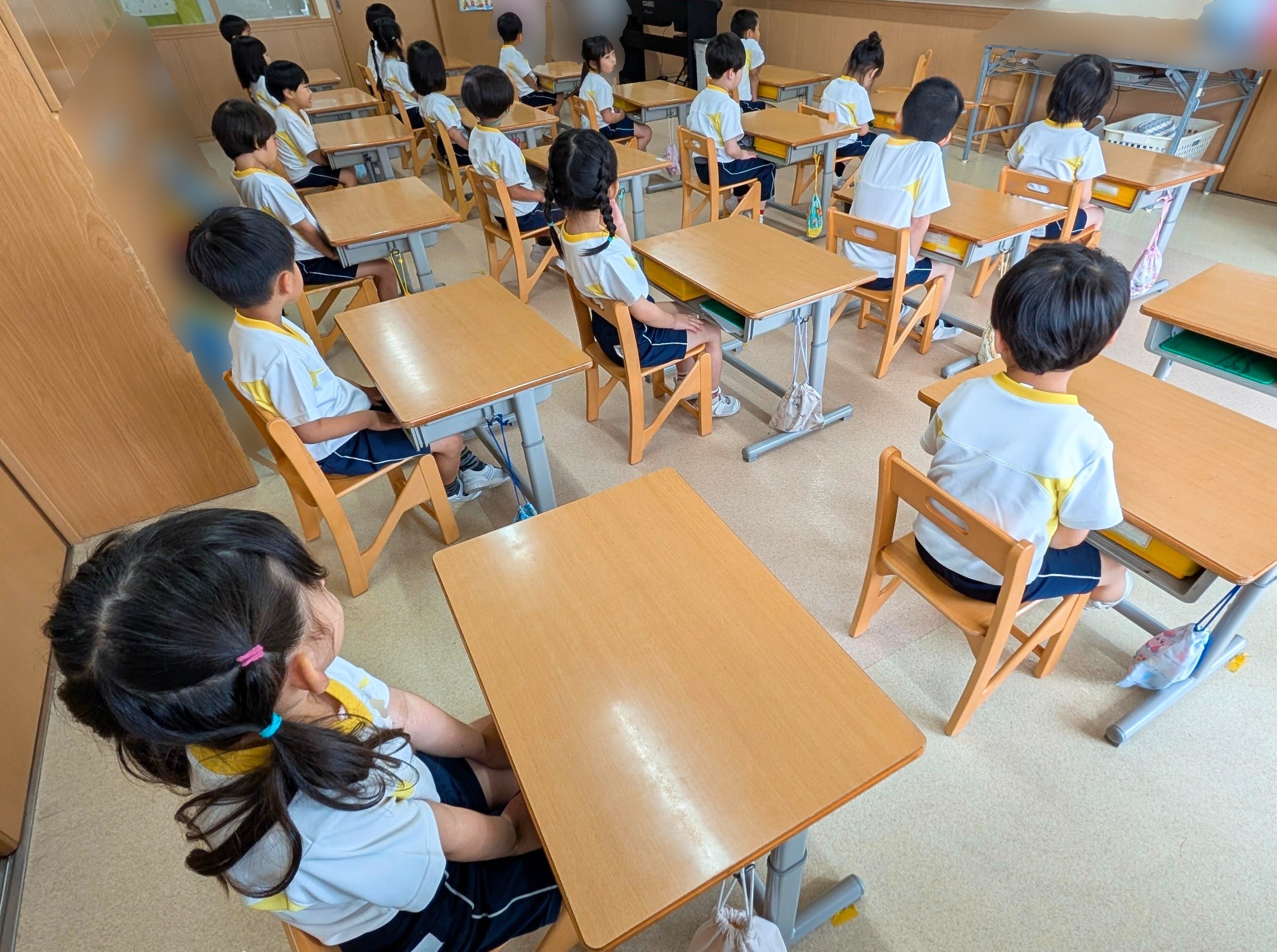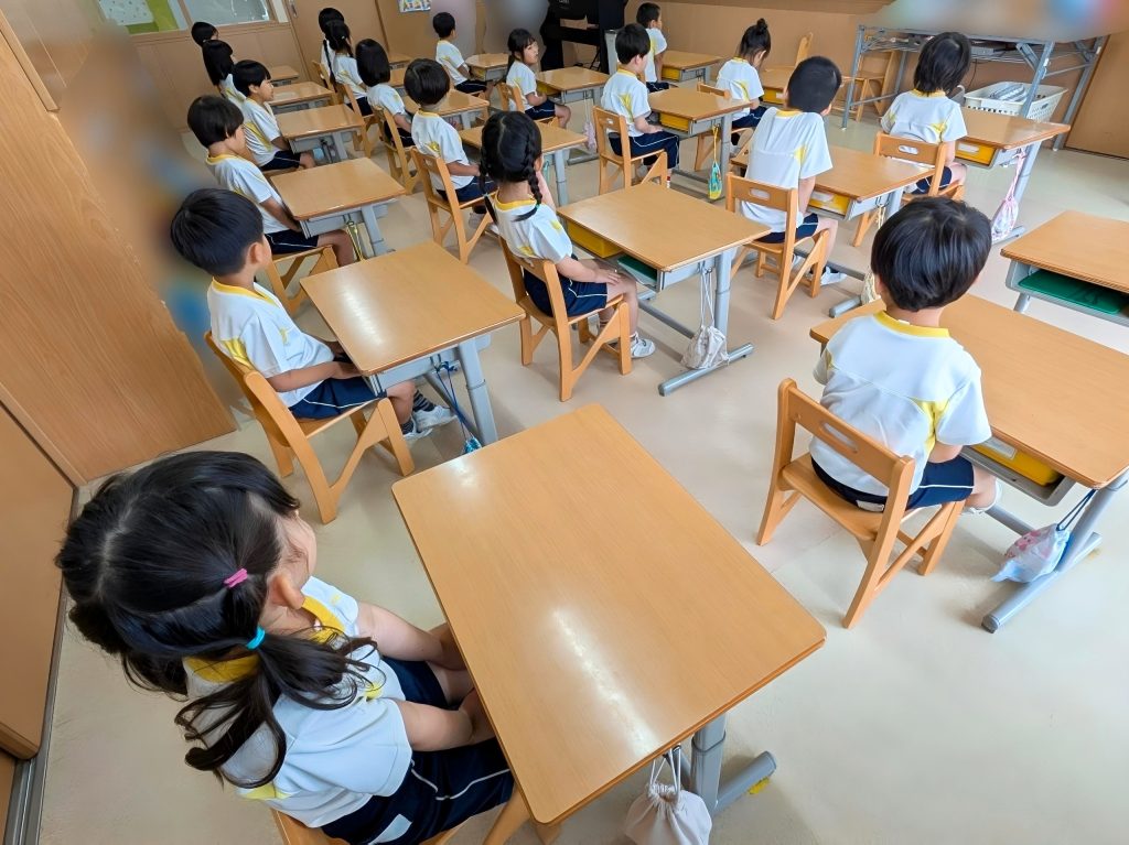 ピアニカを取ってきたら、机に置いて待ちます。