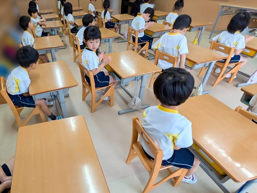 座って🪑音楽の先生を待ちます。
