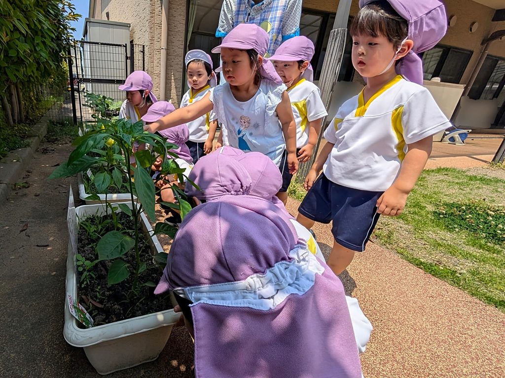 「これなあに?」「〇〇かな?」などと、先生やお友だちと何の野菜かとたくさん考えていました。