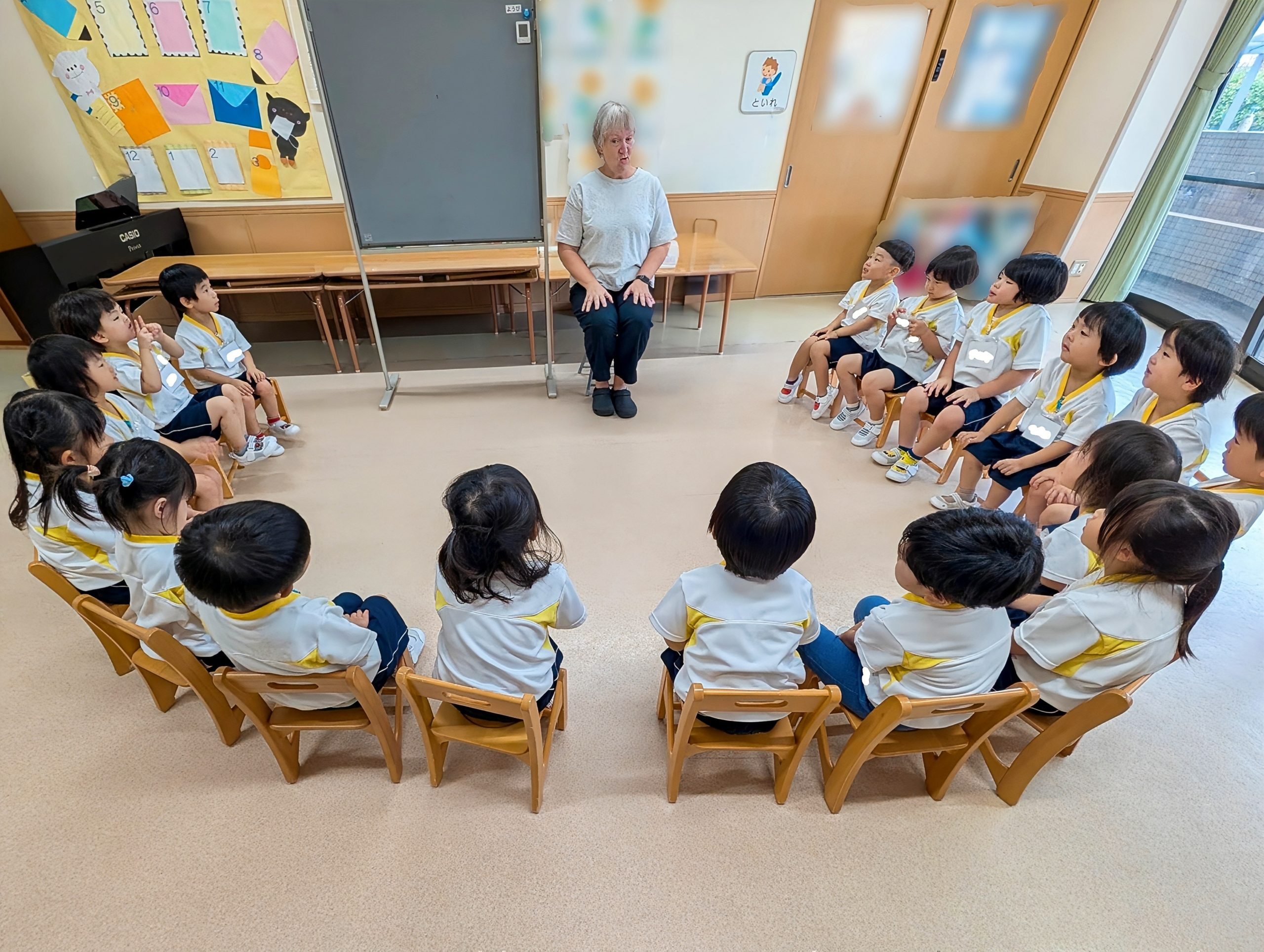 まずは、先生を前に、半円になり椅子🪑に座ります。