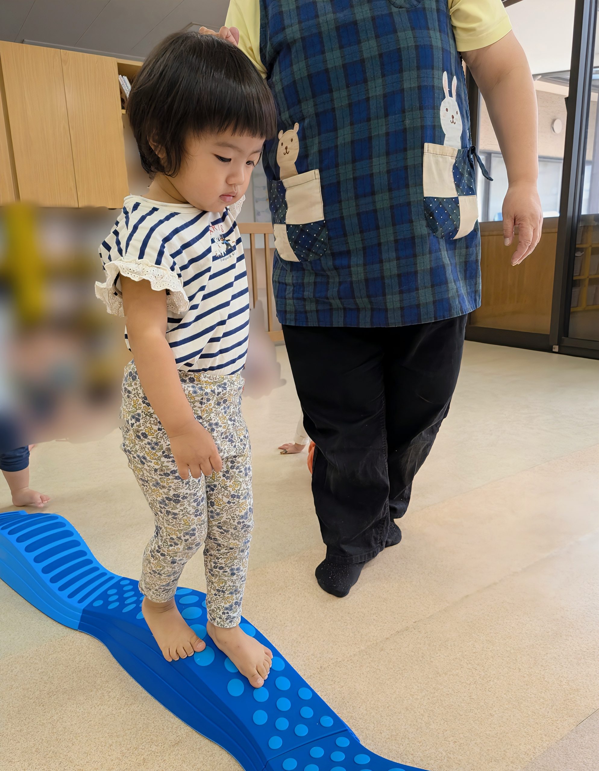 1人ずつ先生と手を繋いで🫱🏼🫲🏼、くねくね平均台とマットの山⛰️を渡りました♪