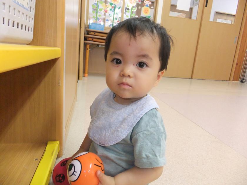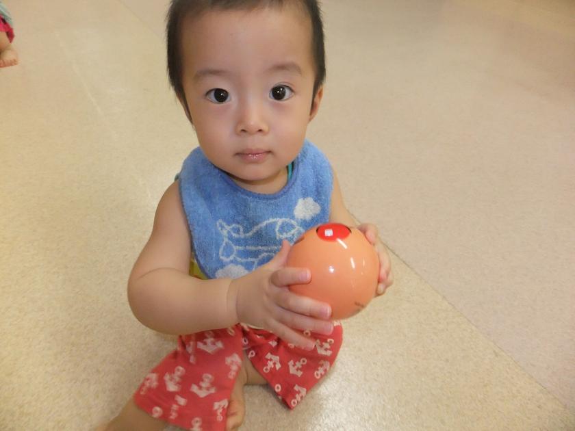 さくらんぼぐみ(*^_^*) 2012年08月22日 さくらんぼぐみのボール遊びの様子を紹介します アンパンマンのボールを大事そうに持っています カメラ目線が決まっていますね ニコニコ笑顔がかわいですね 暑さに負けず元気な子どもたちです