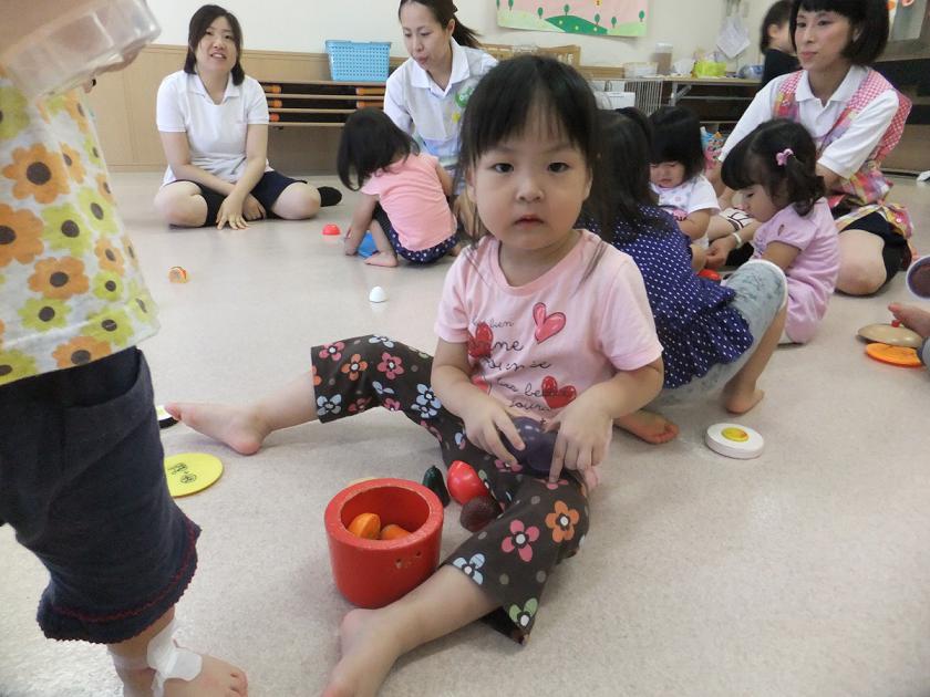 ままごと2 2012年09月30日 しばらく更新していなくてすみません いちごぐみのままごとの続きを紹介します お鍋の中には何が入っているのかな?手にはなすを持っています カメラ目線が決まっています 今から何を作るのかな? お料理が上手ないちごぐみさんです
