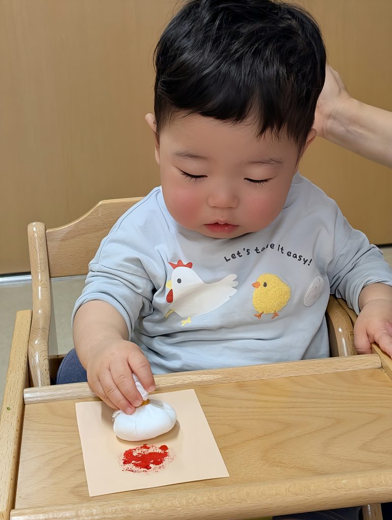 たんぽスタンプは、お顔を付けてかわいいサンタさん🎅になりました^_^