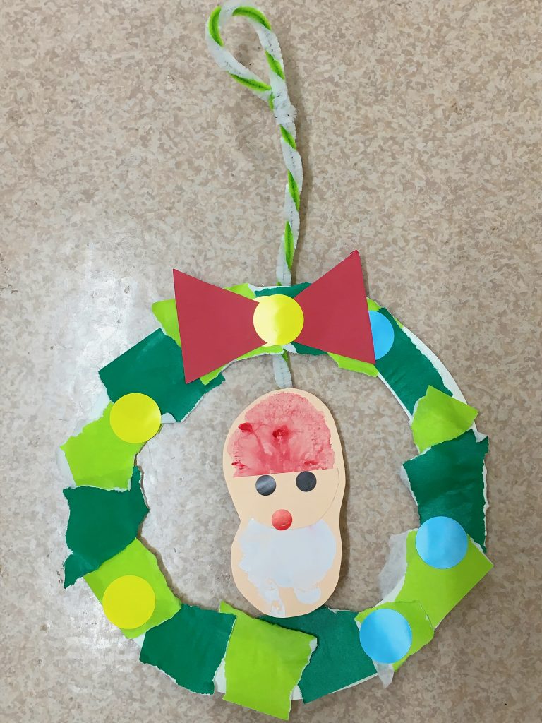 破いた折り紙は、紙皿に貼り付けてリースに😊
