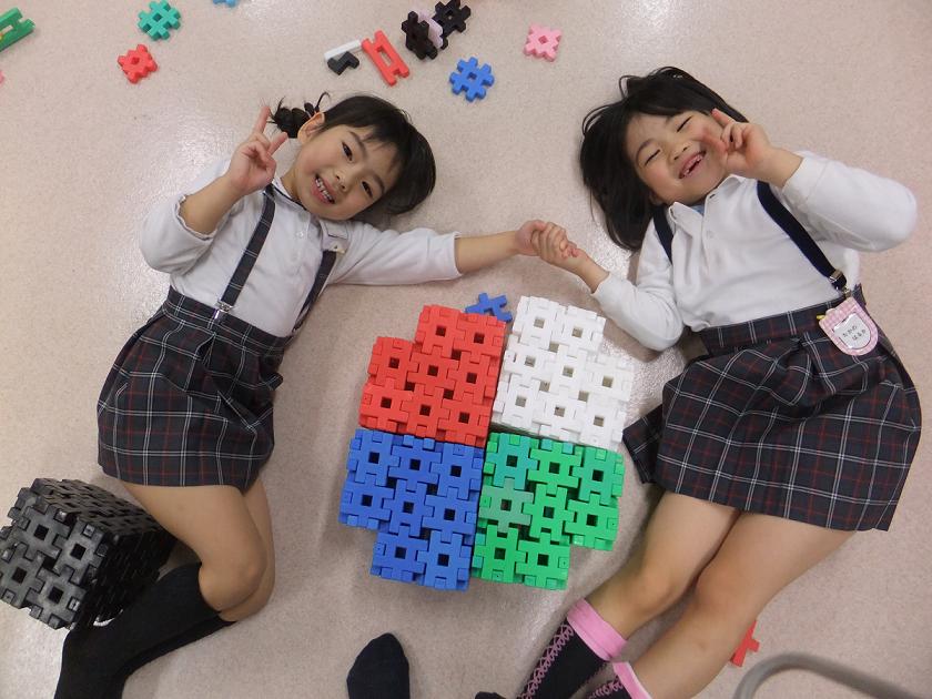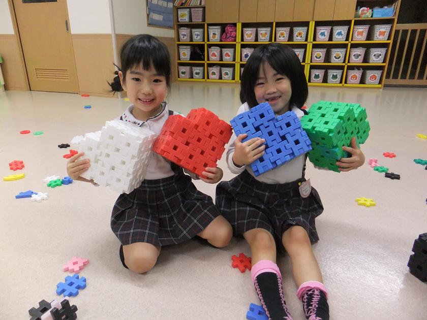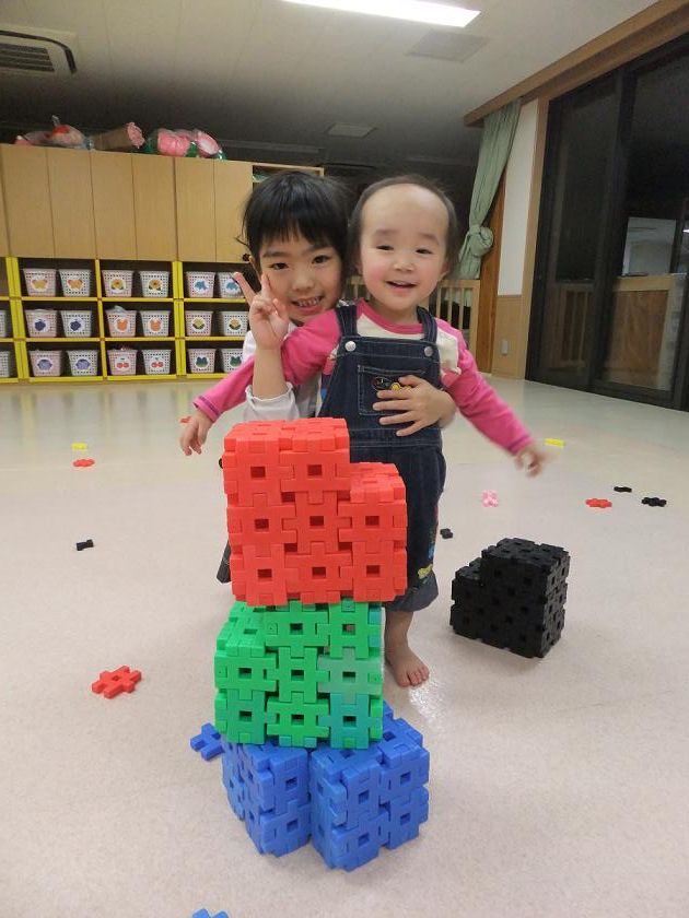 ソフトブロック遊び☆ 2012年12月26日 ソフトブロックでこんなものを作りました ハートを4個組み合わせてクローバーを作りましたさすがれもんぐみさんです 緑、青、赤、白の4色です 縦に組み合わせていました