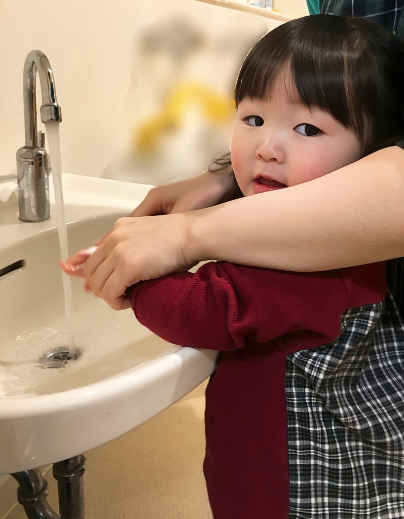 進級に向けて、1月からおやつ🍪や給食🍽️の前に手洗いの練習をしているさくらんぼ🍒組さん。