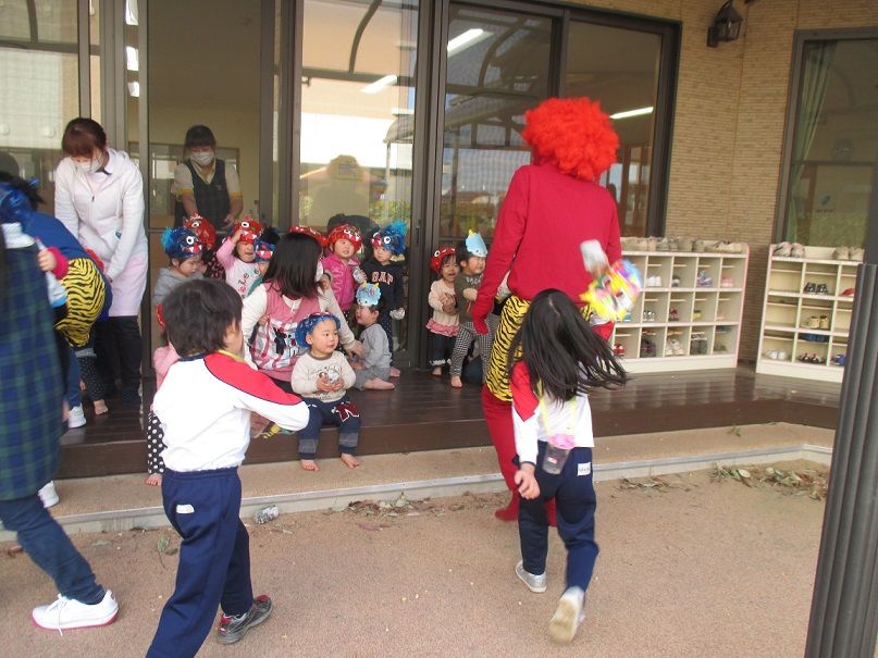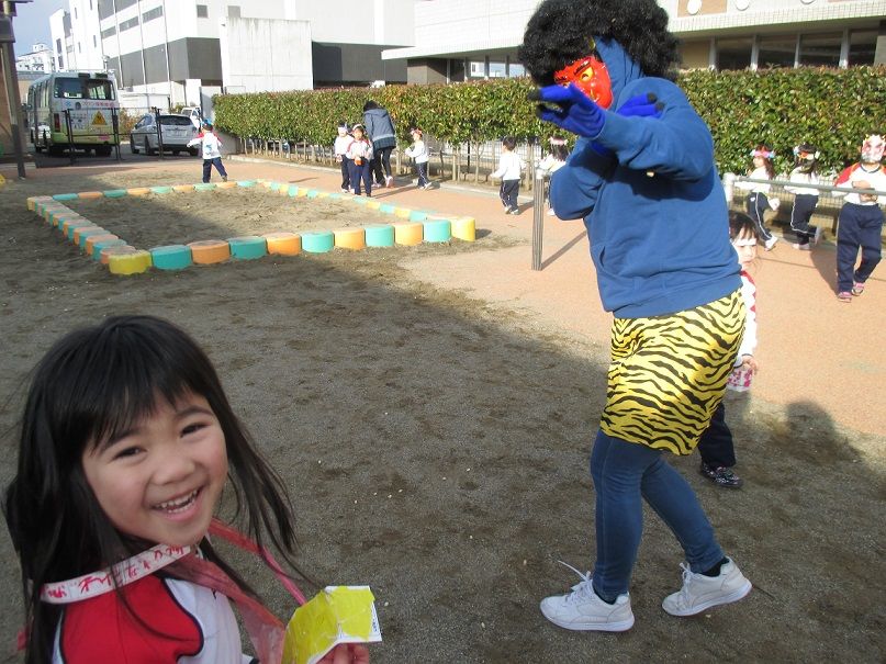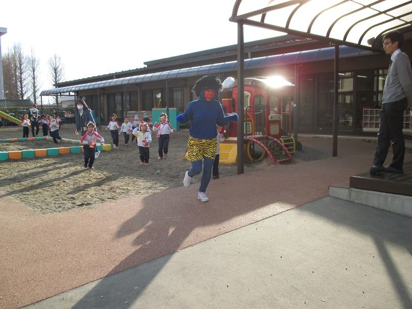 』と鬼も降参して、園内の外へと逃げていきました![]()