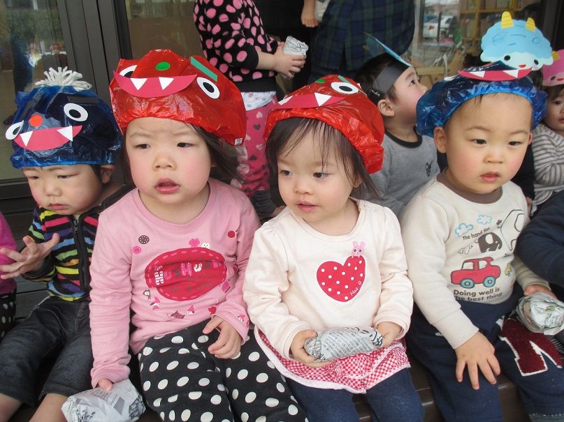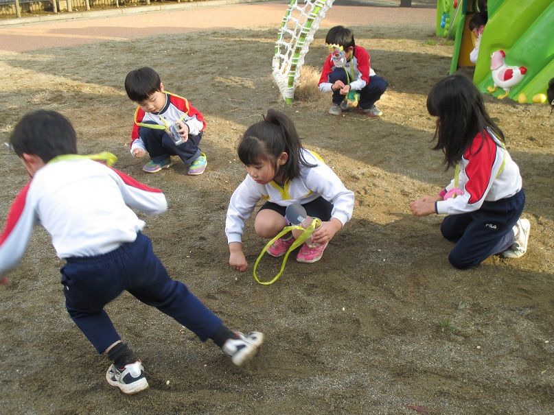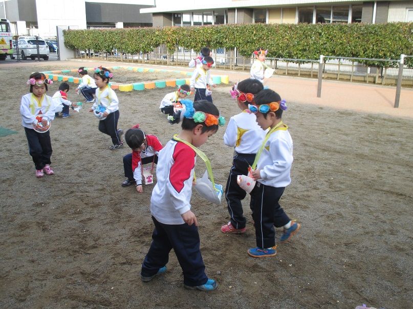 鬼退治が済んだ後は、園庭に投げた豆をみんなで拾い、キレイにしました![]()