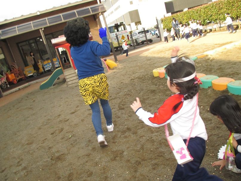 鬼の背後から以上児クラスのお兄さん、お姉さんが助けに来てくれました![]()