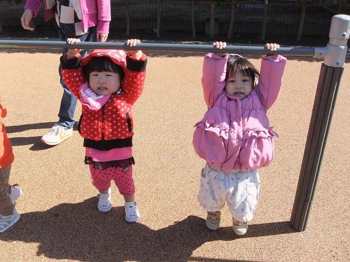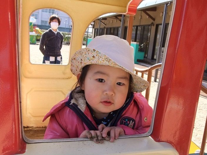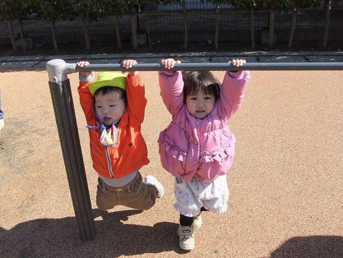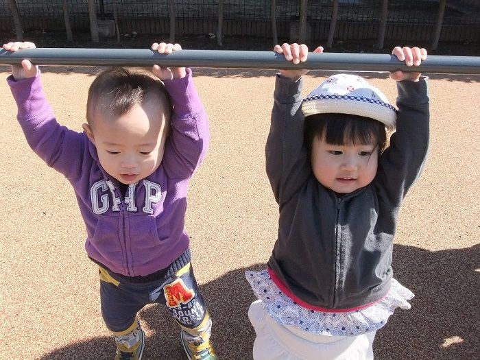 さくらんぼ🍒戸外遊び 2016年03月07日 先日のさくらんぼぐみの戸外遊びの様子を紹介します 外に出るとニコニコの子どもたち 滑り台の窓から、顔を出してくれました 鉄棒にも挑戦 ぶら下がって楽しんでいます 子どもたちの様子をまた紹介しますので楽しみにしていてください