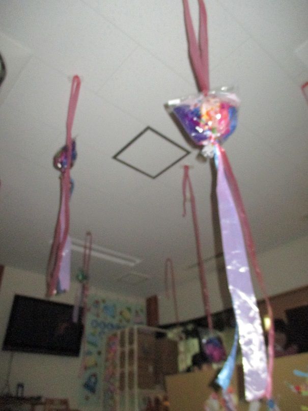 そのうえ、天井から小さなオバケが釣り下がっています![]()
