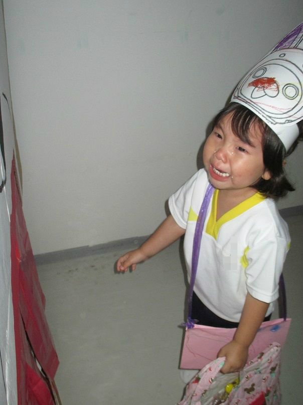4~5歳のクラスの中は、電気が消え真っ暗に![]()