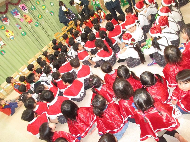今日は…!? 2016年12月21日 12月21日(水)今日は、クリスマス会がありました~ お部屋もクリスマス仕様に変身 ちょっぴり違う雰囲気に、子ども達もソワソワ…ドキドキ… 各クラス、衣装を着て準備万端 クリスマス会のスタートを今か今かと待っています どんなクリスマス会だったか、気になっている所だとは思いますが、その様子は徐々に更新していきますので、お待ちください