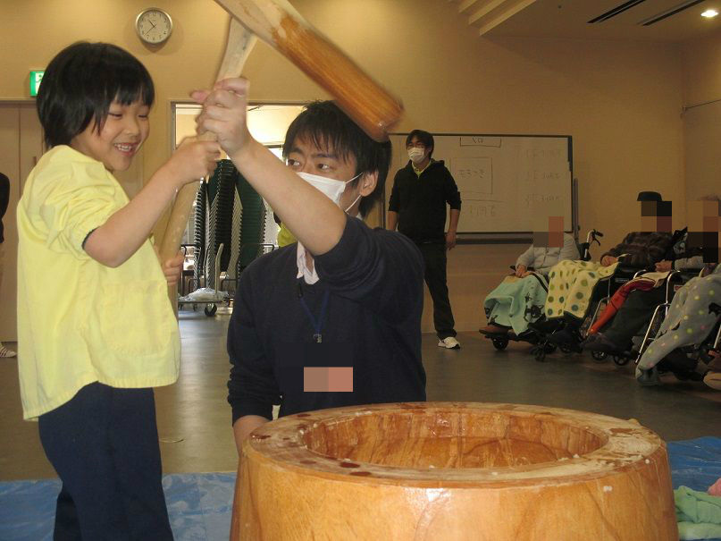 他のグループ同様、子ども達も、もちつきの体験をさせていただきました![]()