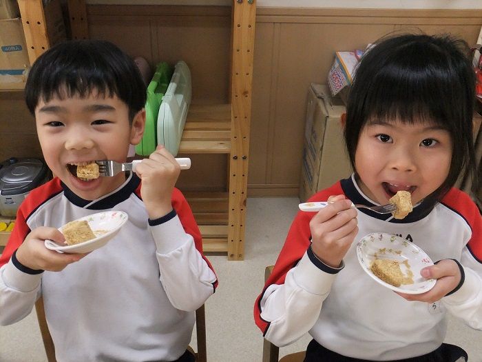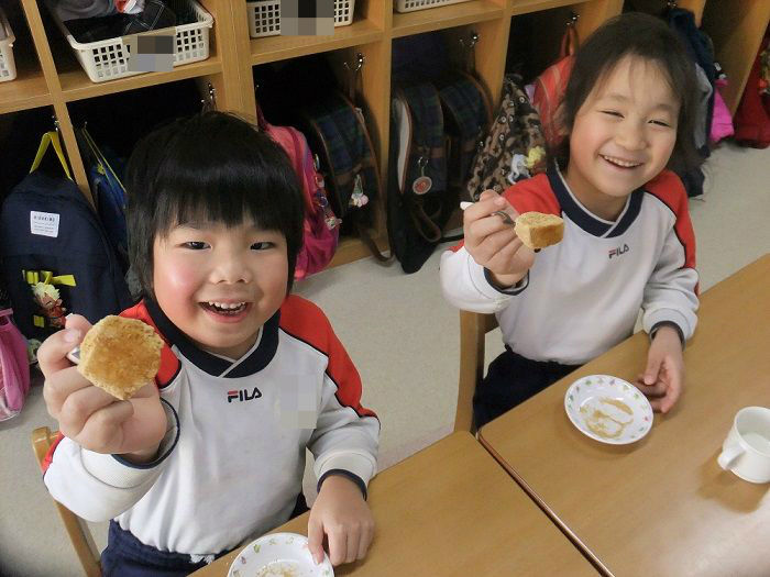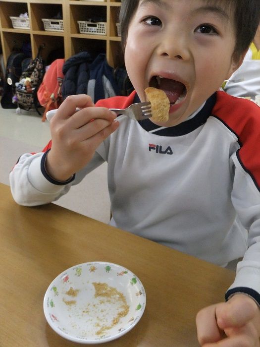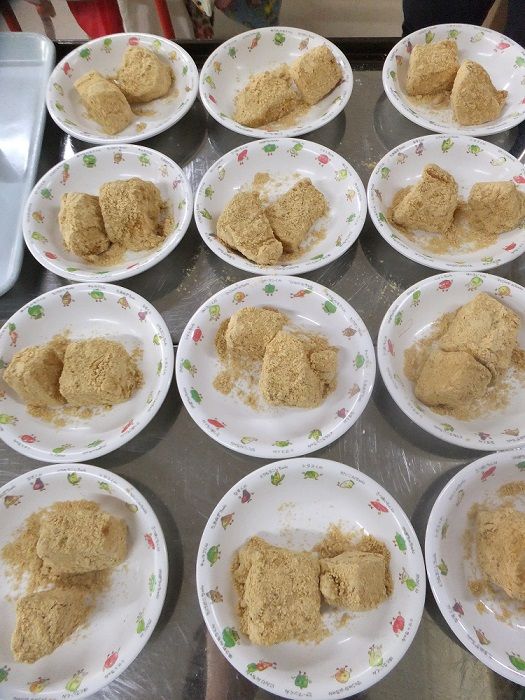 子ども達が頑張って搗いたお餅は、午後のおやつにきな粉をかけて食べました![]()
