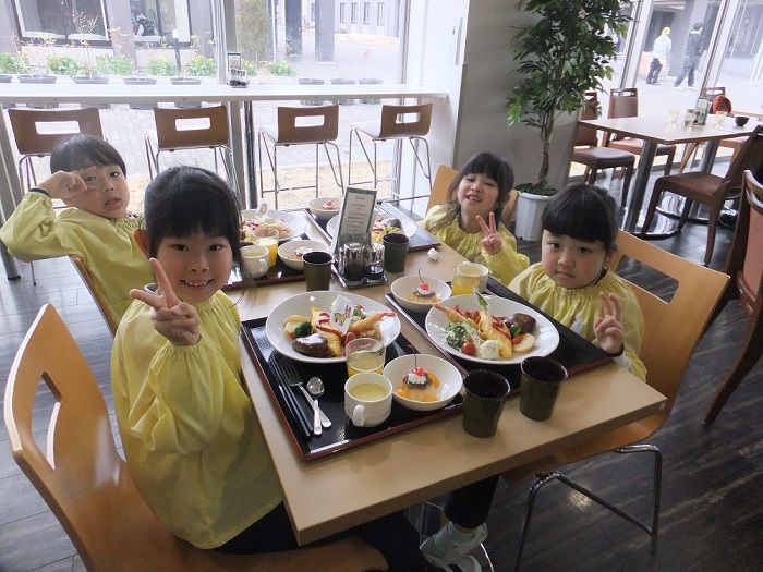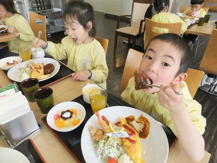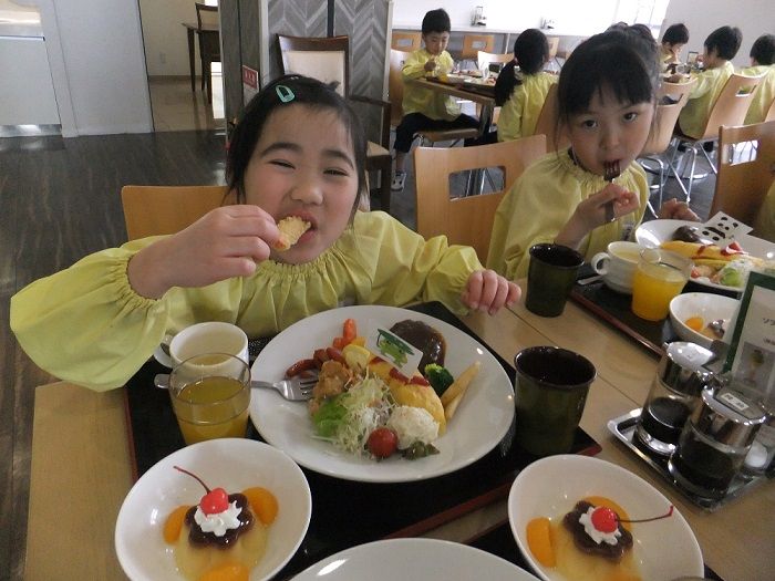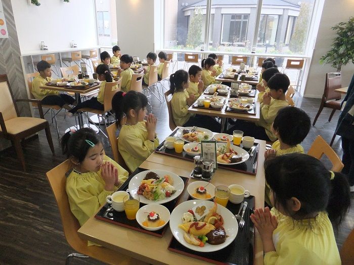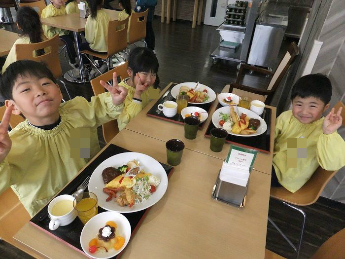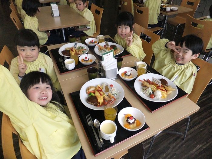 先日、卒園を間近に控えたれもん組さんを祝して、北水会の敷地内にあるレストラン【クローバーダイニング】にて、お昼の食事会をしました![]()