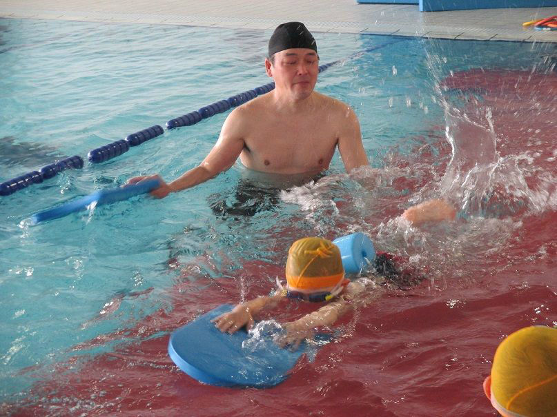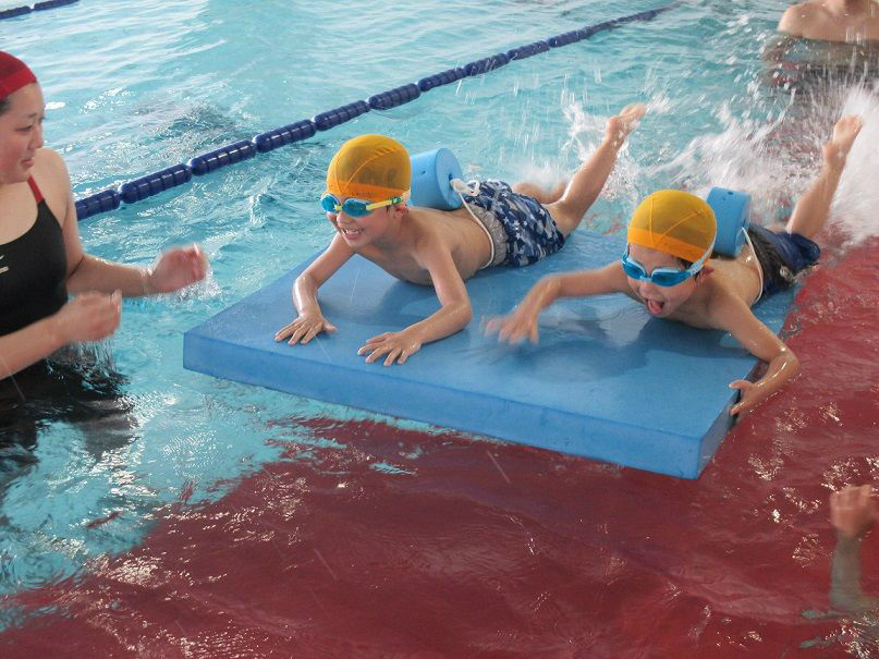 最後は、みんなの好きな大きなビート板に乗ってのバタ足![]()