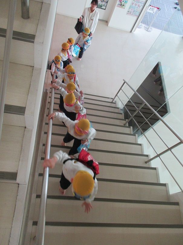 階段を上る時は、プールバックを持ち替えて一歩ずつ上っていきます![]()