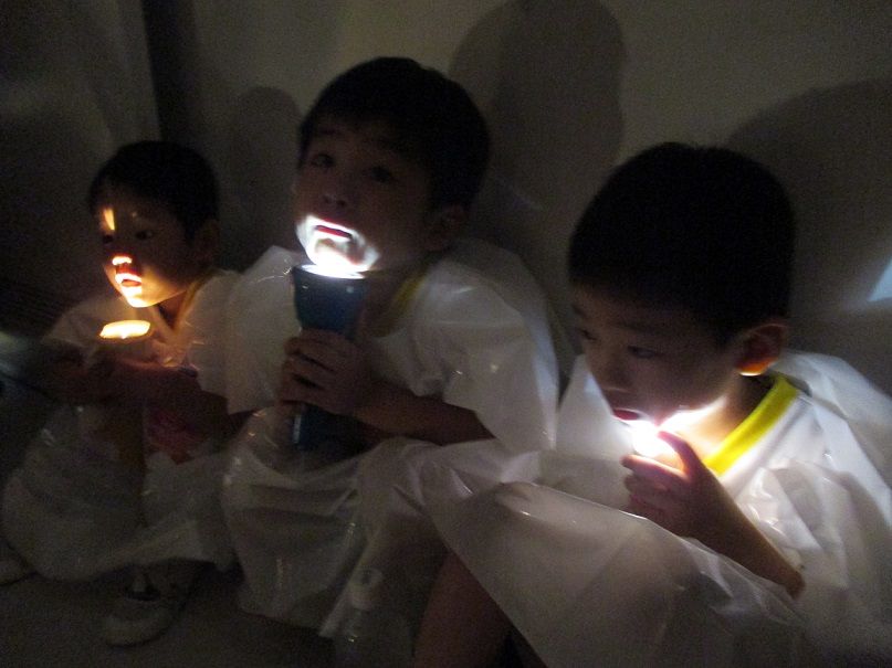 暗闇の中で、顔を照らし待ち構えるオバケ達![]()