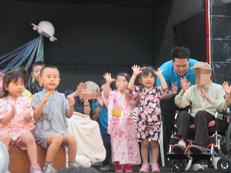 子ども達も利用者様たちも、顔を見合わせながら歌ったり、楽しそうな表情が印象的でした![]()