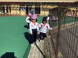 先日、お天気も良く、みんなでコミュニティ庭で遊びました。