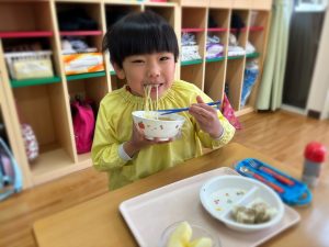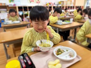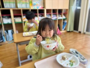 かもめ組☆リクエスト給食 2026年02月03日 1月30日の給食はかもめ組さんのアンケートで決まったメニューでした( *´艸`) かもめ組さんで一番人気だったのが☆塩ラーメン🍜☆でした(^_^)/ みんな大きな口を開けて美味しそうに食べていました(*^▽^*)