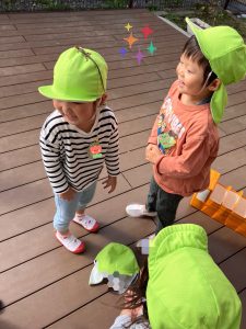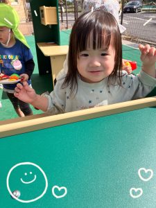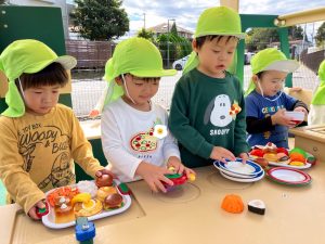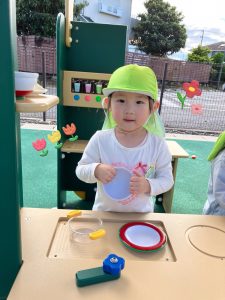 キッチンカー遊具でおままごと遊びをしました!「いらっしゃいませ~!」とお店屋さんになったり、「これください」とお客さんになったりして楽しみました♪