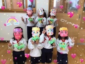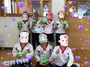 節分で鬼のお面と豆入れを作りました‼️楽しかったね👹🫘
