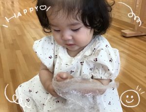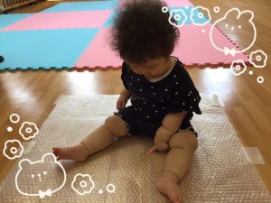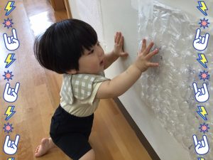 今月はお部屋でプチプチマットなどの緩衝材で遊ぶ様子をご紹介します!